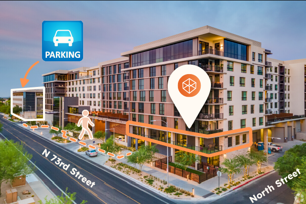 We recommend parking in the complimentary garage directly south of the Vitri Apartments.